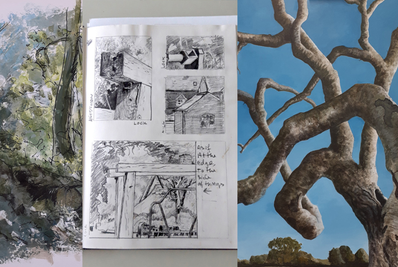 This is a practical course that looks at a range of activities from sketching to paint studies to developed paintings. It follows the methods of Constable who would make sketches and paint studies on location, then use those observations to develop paintings in the studio. We will look at his practices in a presentation on arrival, followed by some ideas for gathering visual information in different ways in a sketchbook or drawing board. There will be a trip on Sunday to a Constable exhibition to see the real thing. Then return to explore composition principles as Constable did.